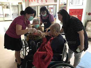 活動開始,由日照長輩協助養護長輩點餐,是日餐點名稱很特別,全部都是以健康涵意為主的四字詞,這也是日照長輩獨特創意。羅伯伯說「我要福壽康寧餐,給個一輩子」。萬伯伯說「我想要長壽永康餐,因為今天正好有朋自遠方來,所以來個二輩子吧!」