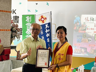 美和科大愛心不落人後,為幫助創世植物人服務經費,校友總會鄒富梅理事長號召校友響應創世「保柚屏安 渡中秋」文旦禮盒義賣活動,獲王建臺校長支持,帶領全校教職員工一起加入愛心行列,鄒理事長鼓勵全體美和人共同認助300箱文旦禮盒,結餘幫助植物人8,000片尿布;禮盒除自用、送禮外,也可二次公益轉贈植物人家庭,享用好物、送好禮又能兼顧公益,一舉數得;此外,東港味益食品謝貴蘭A咖店長也加入義賣行列,捐贈100盒屏東十大伴手禮-一口鮪魚鬆蛋捲,所得全數作為植物人服務經費。