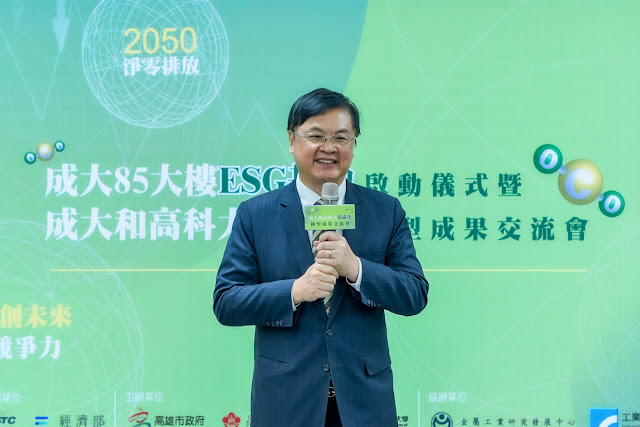 高市羅達生副市長表示,高雄碳排占全臺灣20%,推動淨零高雄勢在必行,因此市府在各項淨零政策都是領先全國開跑,不僅是第一個通過「淨零城市發展自治條例」城市,也邀請中央於亞灣建置「台灣碳權交易所」,並成立「淨零學院」針對府內一級主管及在地大廠業者開班授課,展現高雄邁向淨零轉型企圖心,打造完整低碳產業鏈;同時感謝成功大學,去年率臺灣頂大之先來到高雄設立「智慧半導體及永續製造學院」,今年4月與勞動部共同成立「半導體產業人才培育據點」,今日更因應全球綠色低碳趨勢,與高雄科大等南部12個學校聯盟共同合作啟動ESG基地,透過一流產學科研能量培育一流人才,藉此活絡南部產業淨零轉型所需人才及前瞻技術。