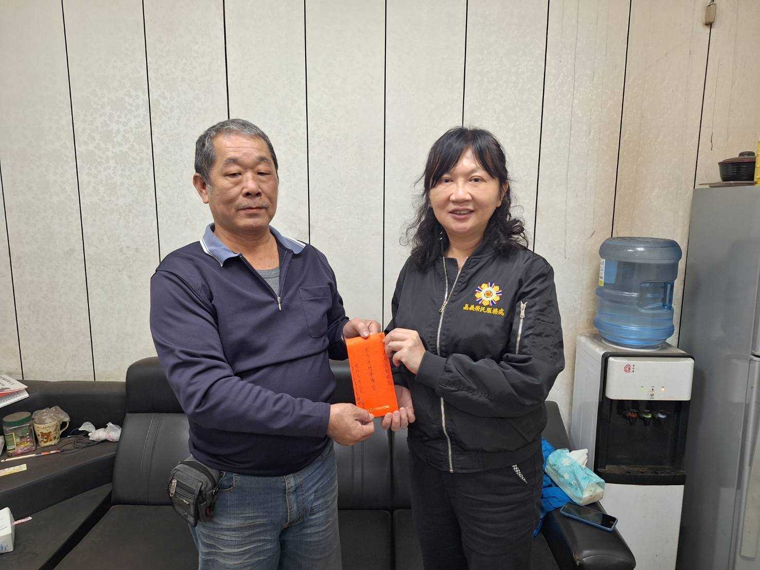 竣旭公司施賜東董事長表示,因其自身士官退役,身為榮民也有責任要照顧榮民(眷),目前是財團法人仁美文教基金會顧問,長期以來均持續認捐學子認養金、急難救助慰問金等,幫助社會上有需要幫助的人;因其本身亦是榮民,希望能幫助關懷清寒者或邊緣戶,幫助那些需要幫助但因故無法申請政府補助族群,完成最後一塊拼圖,遂於春節前主動聯繫要捐助善款,與嘉義榮服處攜手寒冬送暖,希望將善的力量傳播出去。