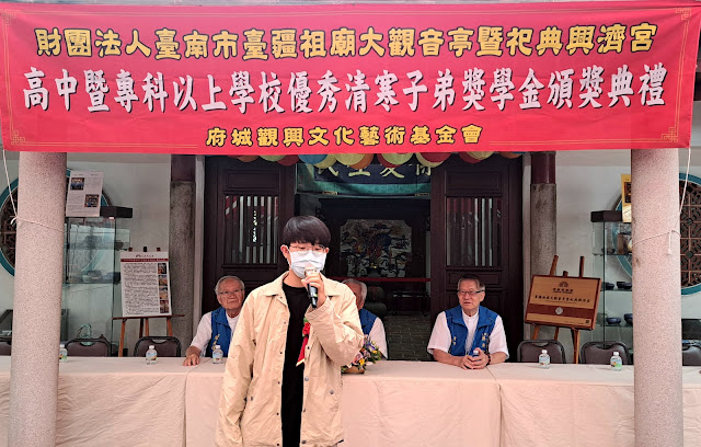 【記者于郁金/臺南報導】為鼓勵學子努力向學,發揚優秀學風,財團法人臺南市臺疆祖廟大觀音亭暨祀典興濟宮特舉辦清寒優秀學子獎助學金頒發典禮,表揚學業成績優異、品行端正學生;典禮於2024年5月5日(農曆三月廿七日)上午10時假大觀音亭祀典興濟宮「官廳」前舉行,由廟方所屬府城觀興文化藝術基金會會長侯明福親臨主持,與會理事林華禎、廖光得,及司儀由理事許忠欽擔任;獲得頒發學子感謝亭宮提供獎學金,大大減少父母壓力。侯明福會長表示,不以眼前的困境所苦,期許同學在未來學有所成後,能以自身所長回饋社會。